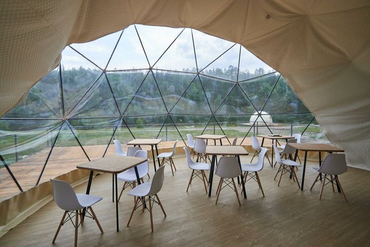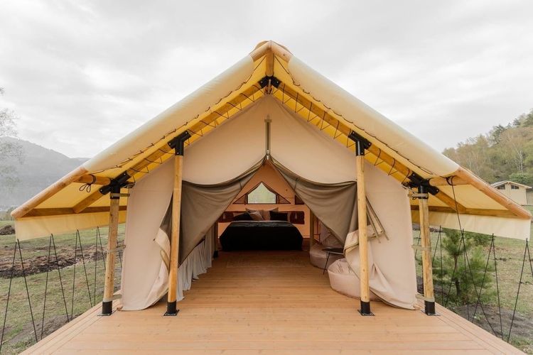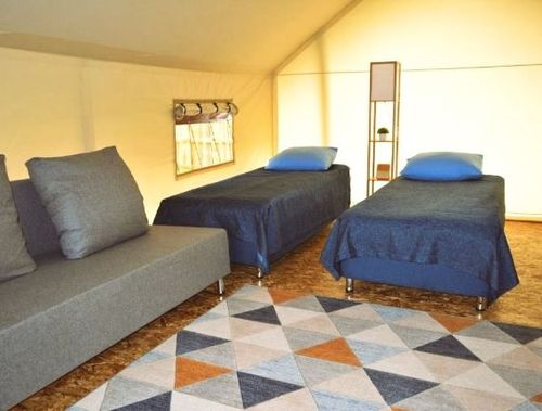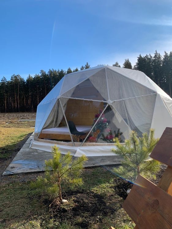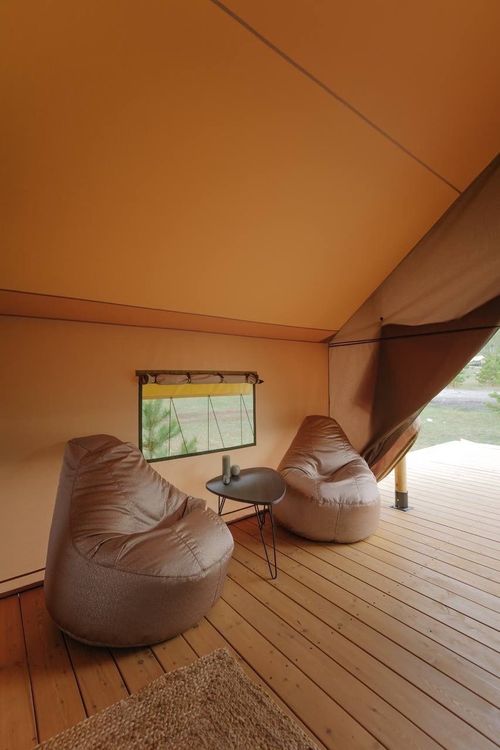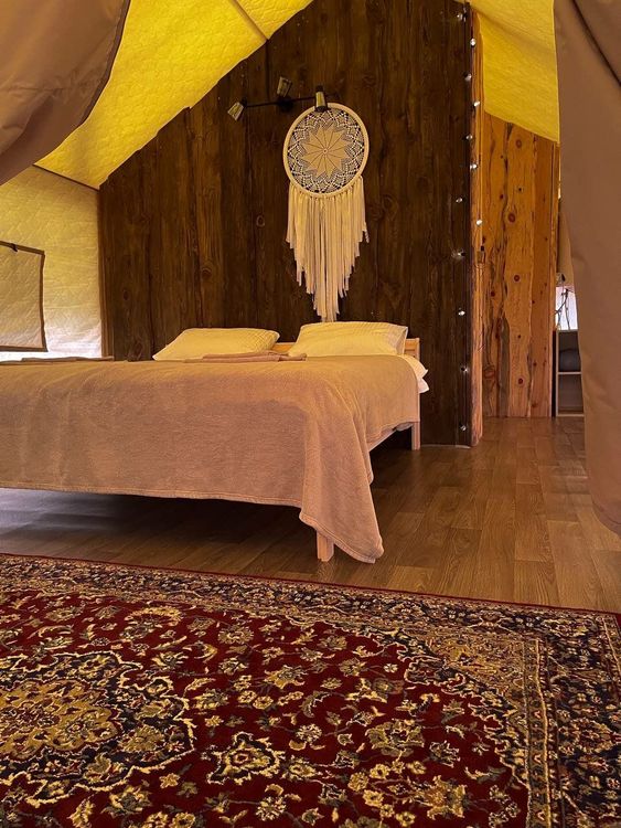 Проживание: для размещения гостям доступны шатры, домики и номера категории «Стандарт».На территории глэмпинга расположена баня.
