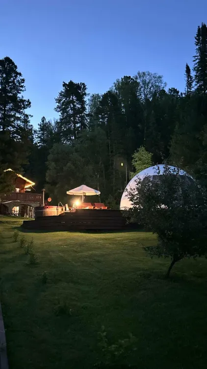 Проживание: глэмпинги, стильные VIP-барнхаусы и уютных шале — это сочетание уединения и премиального комфорта. На огромной частной территории (8 га) вас ждут таёжное озеро, яблоневый сад, баня и множество дополнительных услуг для незабываемого отдыха.