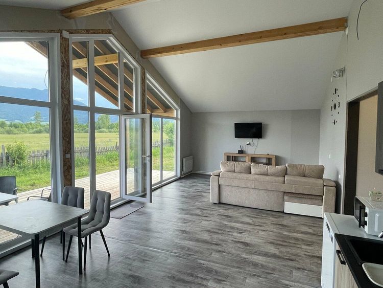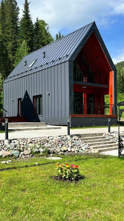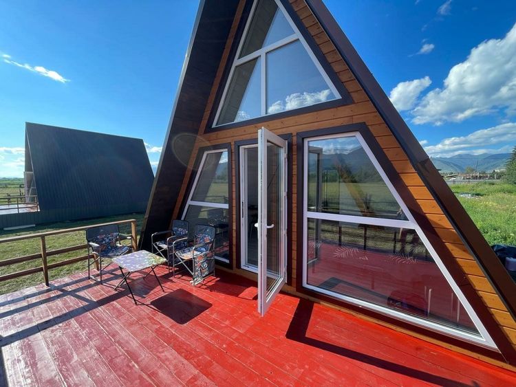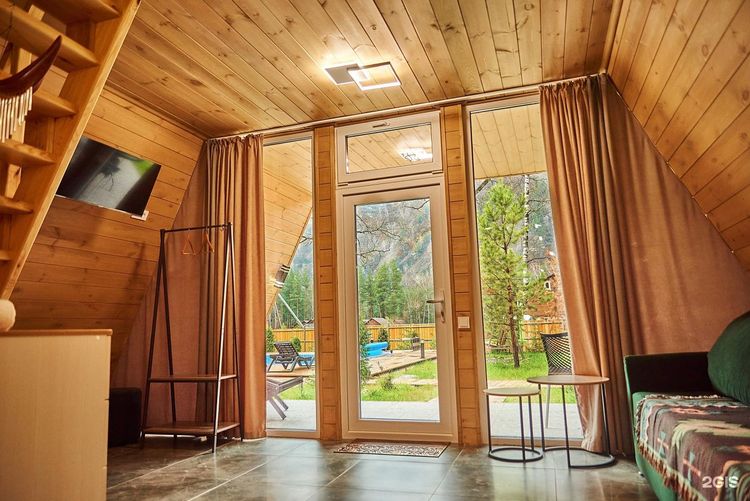Проживание: для гостей доступны уютные А-фрейм домики на 4 человека и просторный Барн Хаус, рассчитанный на компанию до 9 человек. Каждый дом — это современный комфорт в окружении природы: панорамные окна и большая терраса с видом на горы, полностью оборудованная кухня, индукционная плита, микроволновая печь, холодильник, электрочайник, посудомоечная машина. Санузел с душем и туалетом. На территории комплекса есть зона для барбекю и уютная площадка для пикника. Огороженная территория с видеонаблюдением для вашей безопасности. В окрестностях множество природных достопримечательностей: знаменитая смотровая площадка с видом на гору Белуху и живописные Мультинские озёра.