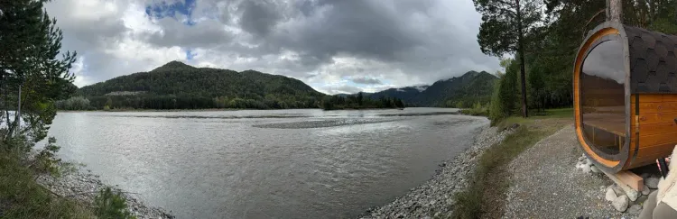 Чем заняться: для гостей организуются экскурсии, конные прогулки, сплавы по реке, эндуро-туры и скалолазание. На территории есть костровые зоны, где можно приготовить еду на открытом огне. После банных процедур особенно приятно будет окунуться в бассейн с подогревом. Дети останутся в восторге от игровых площадок, рассчитанных на любой возраст. Для любителей активного отдыха работает прокат велосипедов и есть возможность поиграть в настольный теннис.