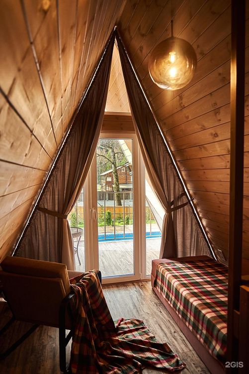 Стоимость: номер «Стандарт» от 6000 руб. А-фрейм двухэтажный: от 8500 руб. А-фрейм трехэтажный: от 15500 руб.