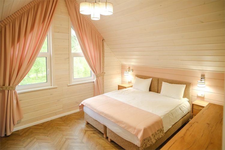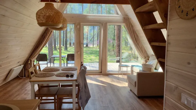 Проживание: база отдыха предлагает размещение в современных и комфортабельных домиках различных типов: барнхаусах, а-фреймах и шале. Все номера оборудованы для автономного проживания и оснащены необходимой бытовой техникой и посудой.