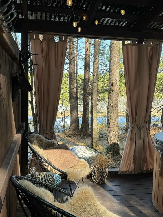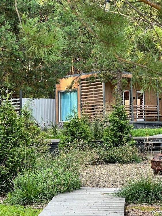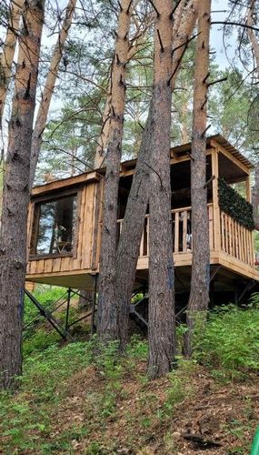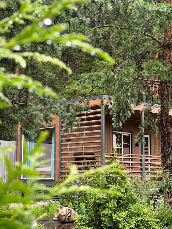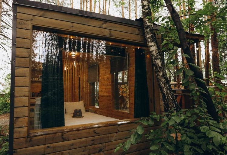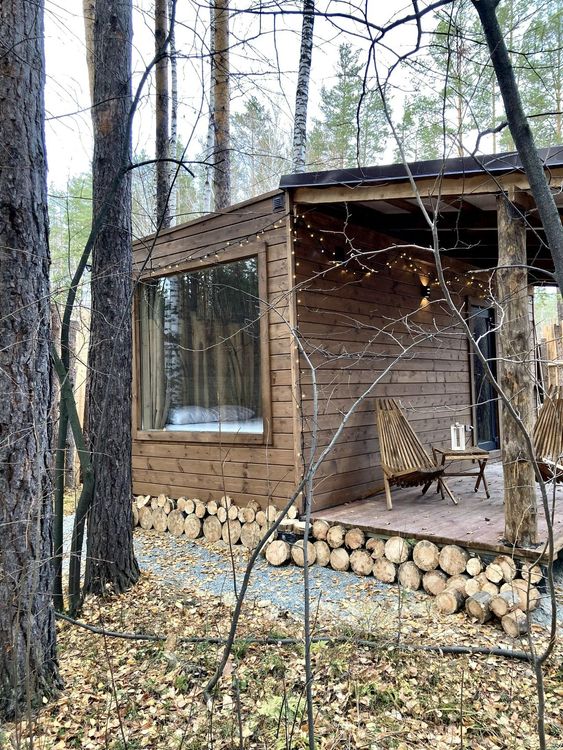 Проживание: постройки в скандинавском стиле с панорамными окнами расположены в сосновом лесу, некоторые прямо на дереве. “Побег из города” в 10 минутах езды от Белоярского водохранилища.