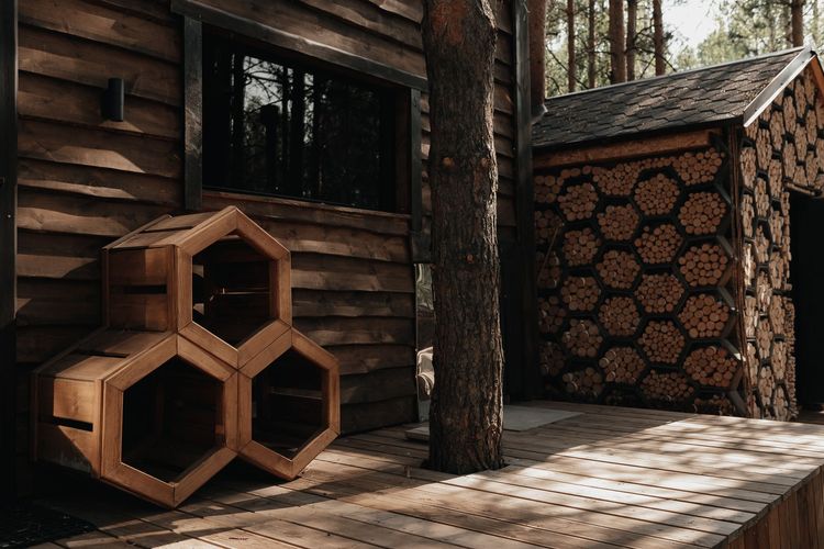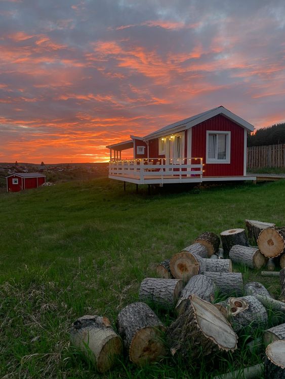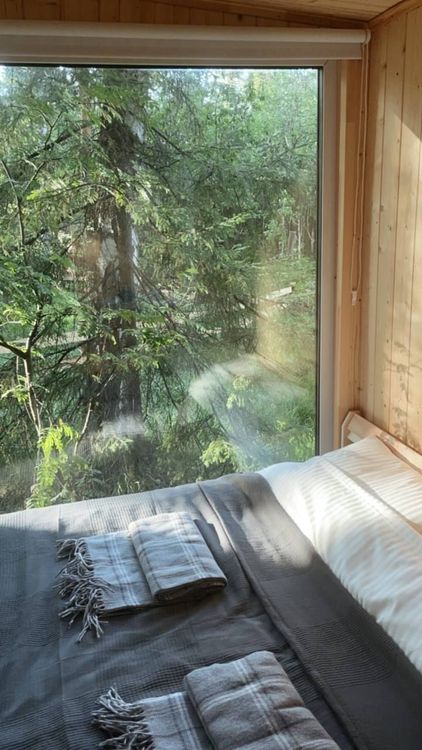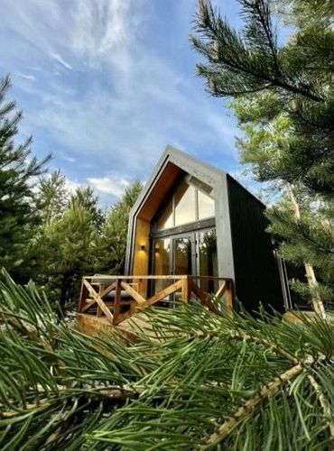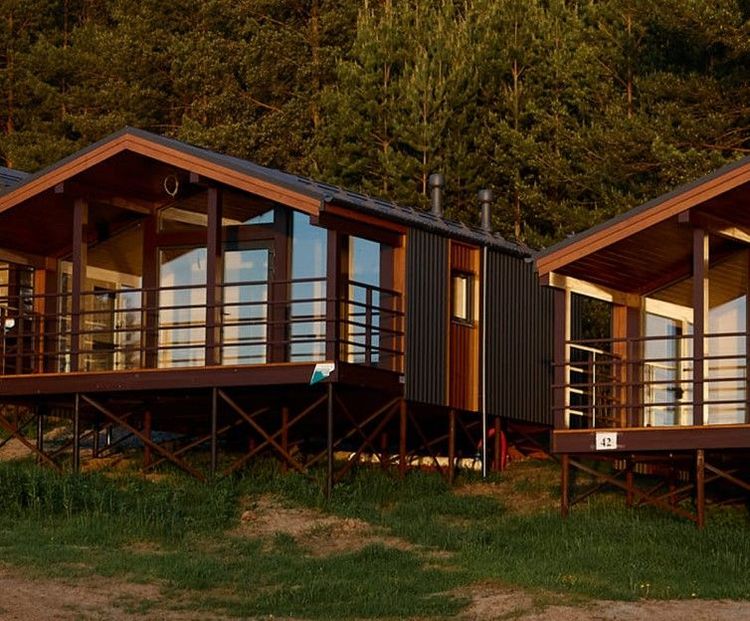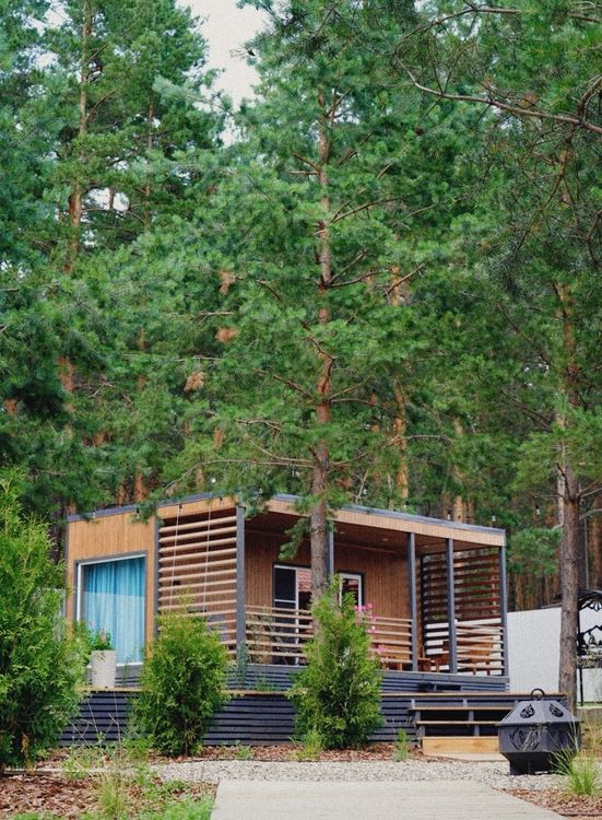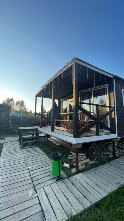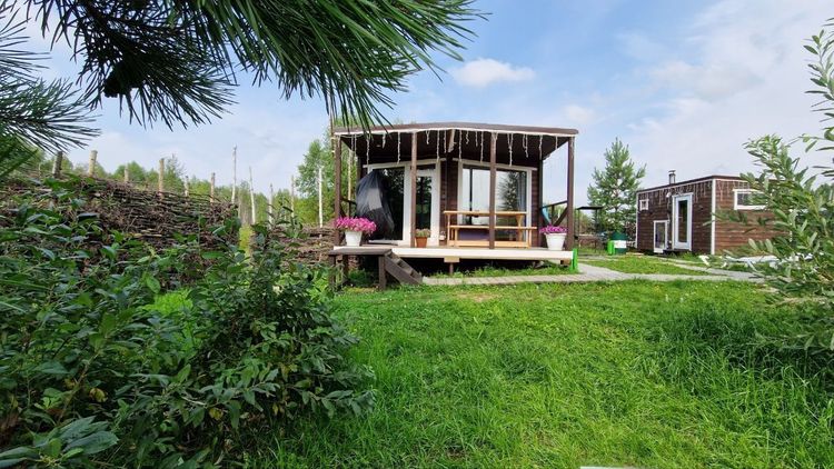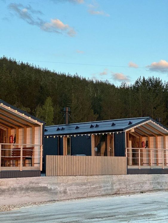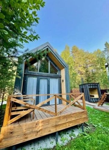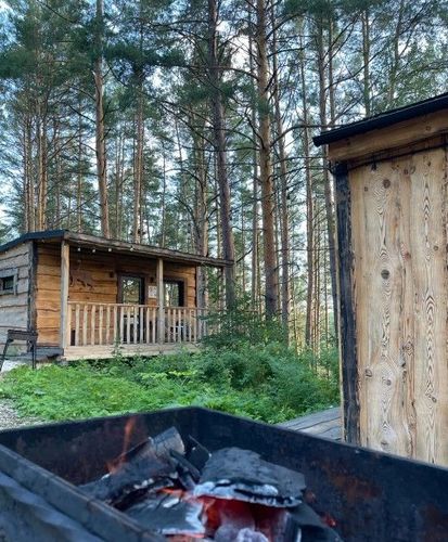 Постройки в скандинавском стиле находятся в 500 метрах от входа в парк, в каждой: душ и туалет, а также мини-кухня с холодильником, плитой и чайником. Мангальная зона для костра и приготовления пищи, а также уютная терраса для наслаждения отдыхом.