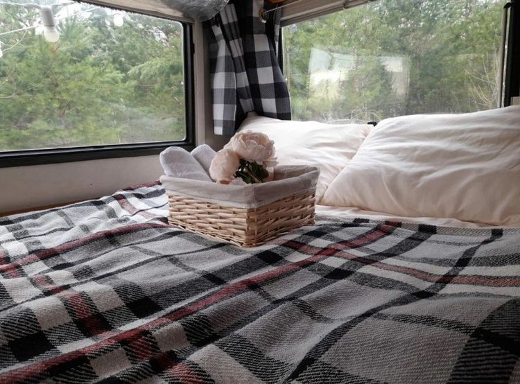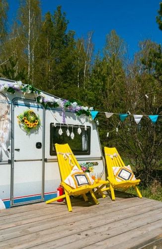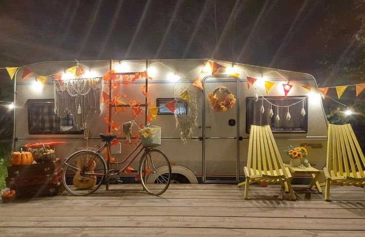 Проживание: база отдыха очень необычна: позволяет почувствовать себя героем американских фильмов, которые путешествуют в доме на колесах. В лесу находятся фургоны, внутри каждого – холодильник, открывающиеся люки для вентиляции, кухонная плита, обеденный стол. Для готовки есть вся необходимая посуда. Внутри машины - две большие двуспальные кровати, а также собственная ванная комната. Трейлеры украшены гирляндами, к каждому примыкает деревянная терраса с шезлонгами. Кроме того, на закрытой территории находятся несколько фотозон, качели, костровище, мангал и уличный стол. Необычный формат создает ощущение, что ты выходишь из квартиры прямо в лес.