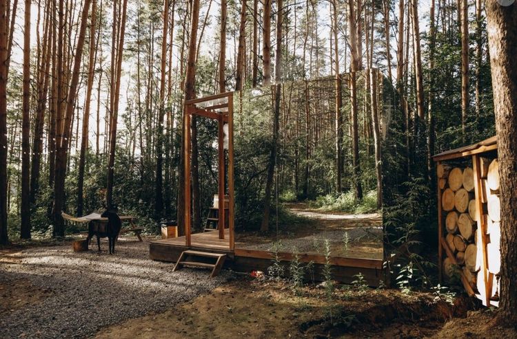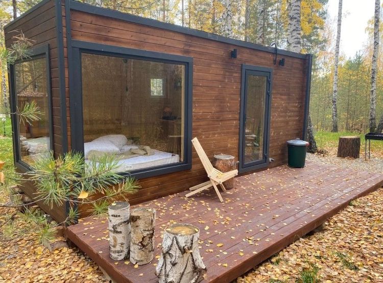 Стоимость: от 5 000 до 9 900 ₽ в сутки (в зависимости от вместимости и формата дома — включая зеркальные панорамные модели).