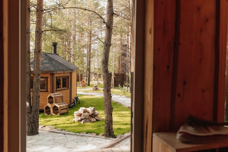 Проживание: глэмпинг расположен всего в 25 минутах езды от Екатеринбурга. В сосновом лесу находятся 5 барнхаусов, вмещающие до 4 гостей. Внутри каждого: двуспальная кровать, диван, оборудованная кухня, туалет и душ. У каждого дома своя терраса, чан под открытым небом, мангальная зона и баня в финском стиле. Ее уникальная печь может выдавать мелко- и крупнофракционный пар.