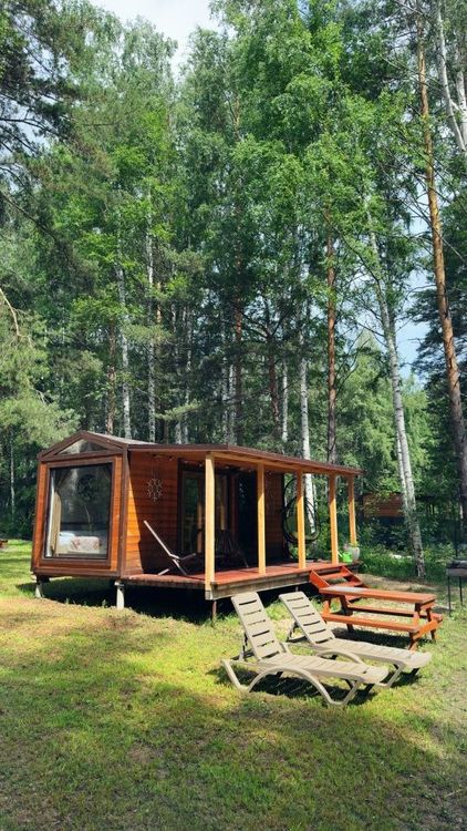 Стоимость: модуль — от 6 000 ₽; афрейм — от 12 000 ₽; барнхаус — от 15 000 ₽; призма-шалаш — 2 500–3 500 ₽; сафари-тент — 3 500–5 000 ₽ в сутки.