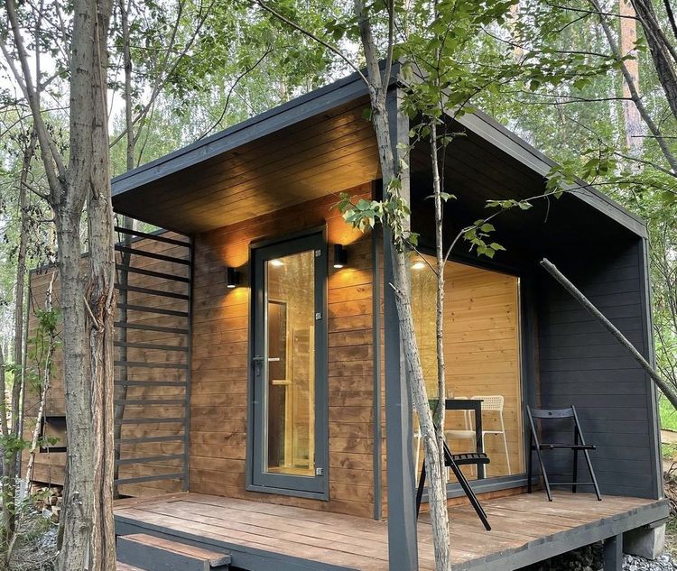 Стоимость: домики A-frame – 10 000-14 000 ₽, модульные домики – 8 000-10 000 ₽, чан – 6 500 ₽, баня – 2 000 ₽ в час.