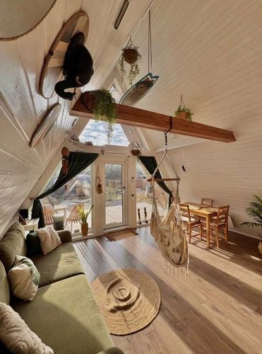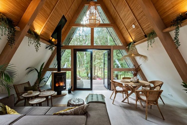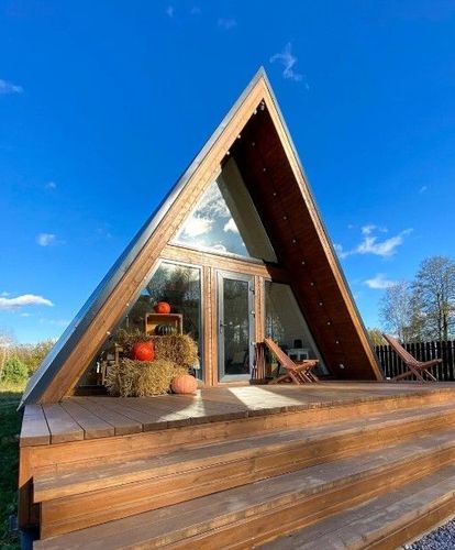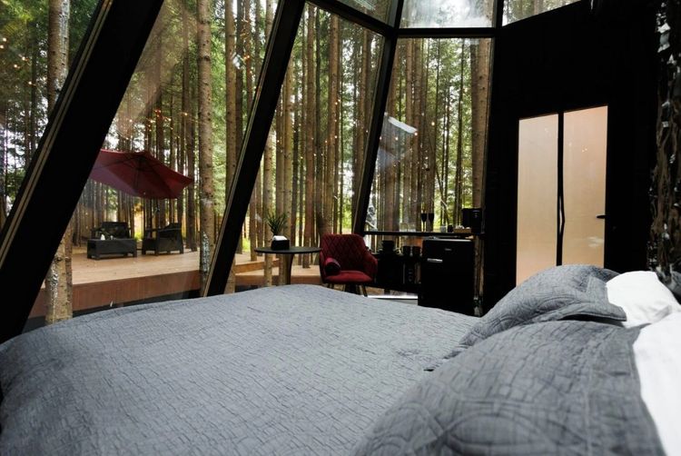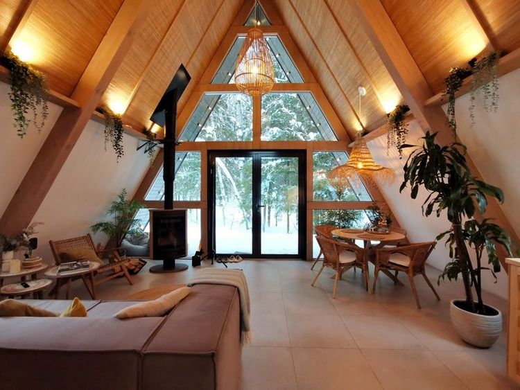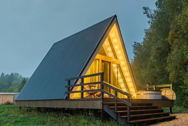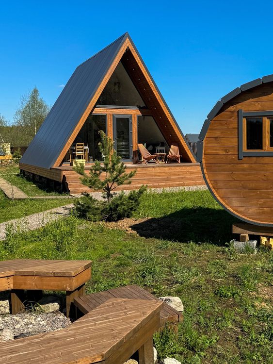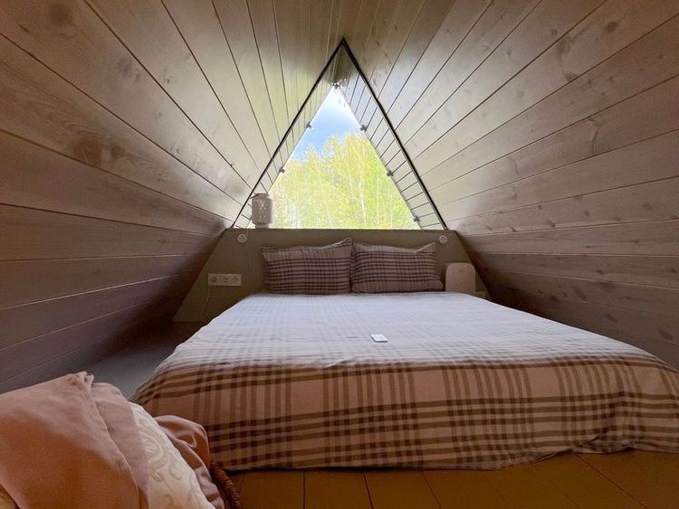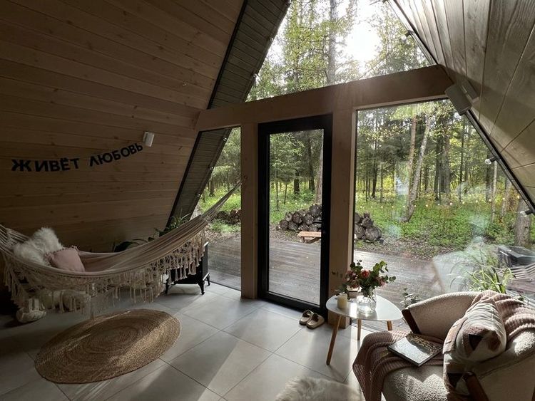Стоимость: забронировать А-фрейм домик можно от 9300 рублей или заселиться в дом с двумя спальнями за 14400 рублей за ночь.