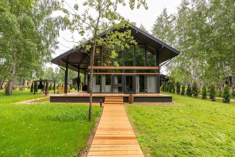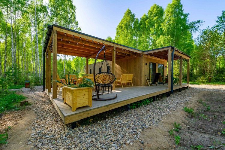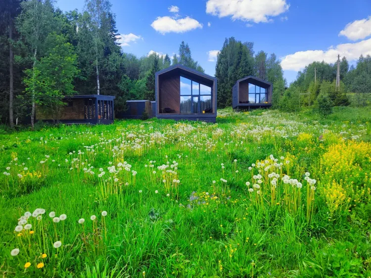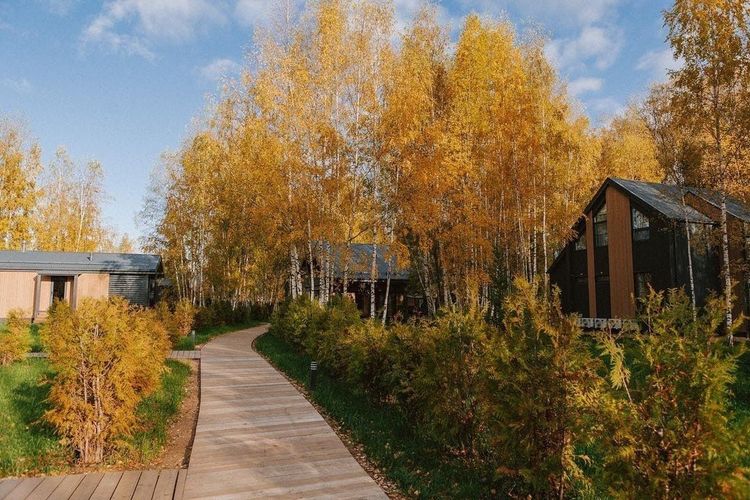 Проживание: это даже не деревня, а полноценная экосистема, которая развернулась всего в 125 километрах от МКАД на территории заповедной зоны парка Бородино. Для аренды доступны дома на любой вкус: А-фреймы, глэмпинги, купольные дома, шатры , барнхаусы , модульные дома и даже юрты. На территории комплекса также расположены пирс, пляж, детские площадки, костровая зона, спортивная площадка и зоны общественного пользования.