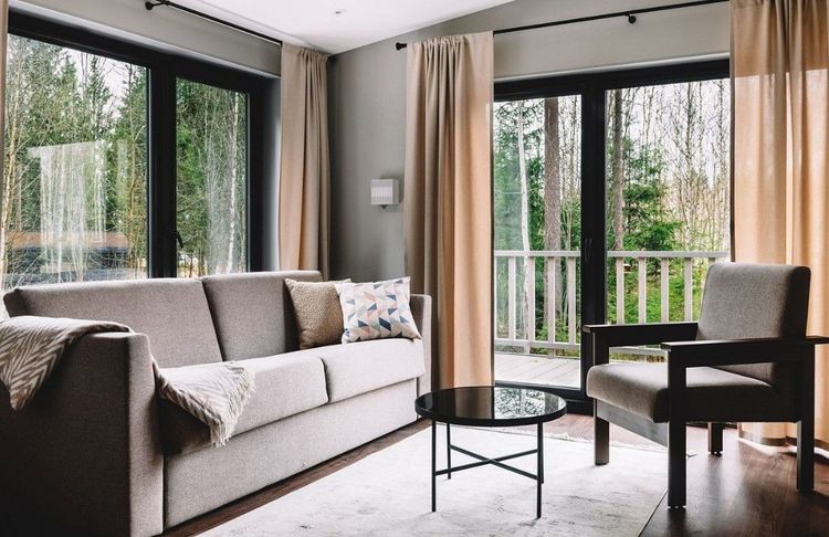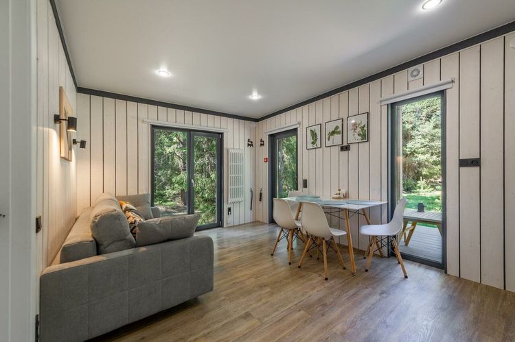 Проживание: на территории 8 га среди леса расположены стильные и удобные барн-хаусы. Домики созданы в современном дизайне и оснащены всем, что может понадобиться для приятного отдыха. Если вы отдыхаете с маленьким ребенком, есть дома с кроваткой и всем , что может понадобиться родителям. Не забыли здесь и о домашних питомцах. В доме найдется все необходимое: миска для еды, мягкие полотенчики, одноразовые пеленки и пакетики для твердых отходов.