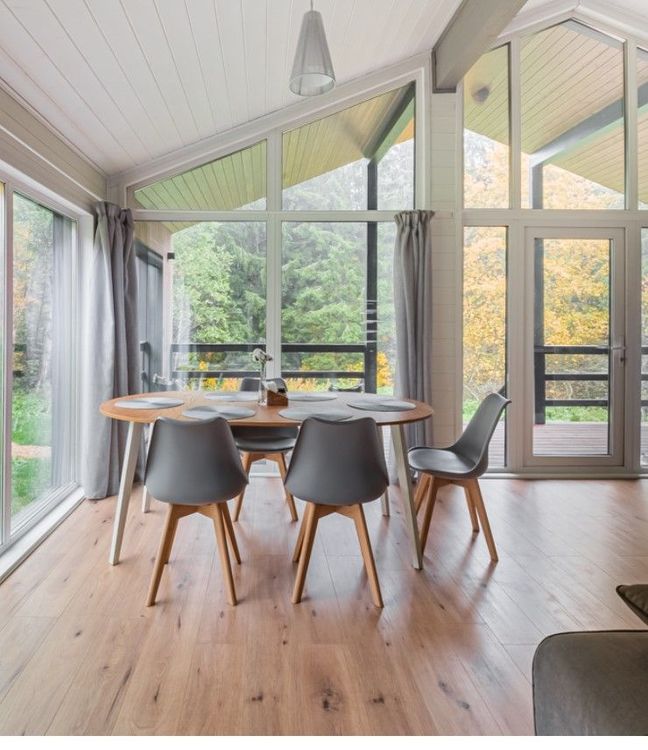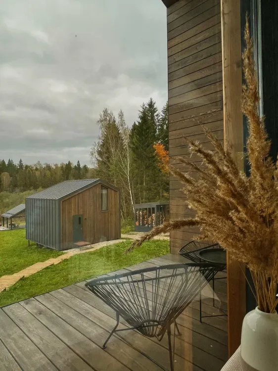Чем заняться: тишина и внутреннее спокойствие, вот главная причина, что бы посетить это место. Можно поиграть в настольные игры, собрать гигантскую LEGO, а так же настольный теннис, дартс , бадминтон. Две лесные бани с купелями позволят гостям расслабиться и оценить вид из больших панорамных окон.