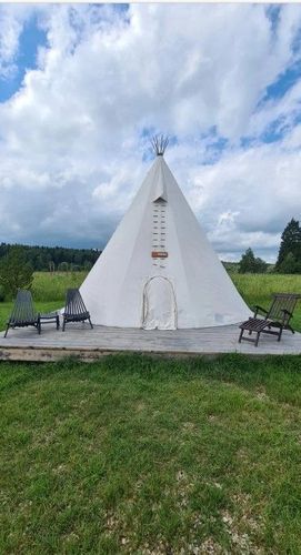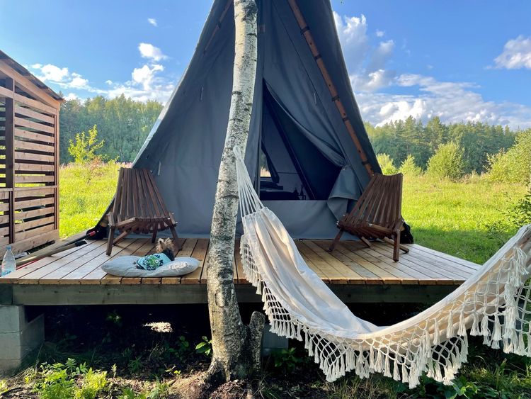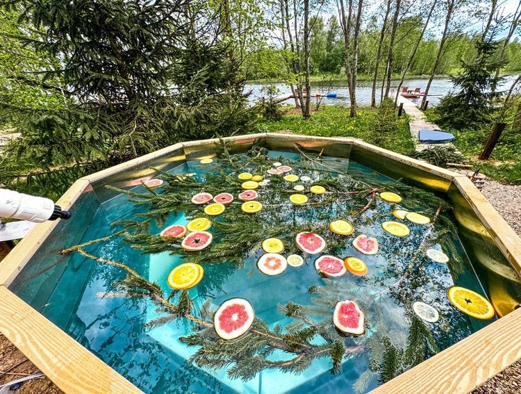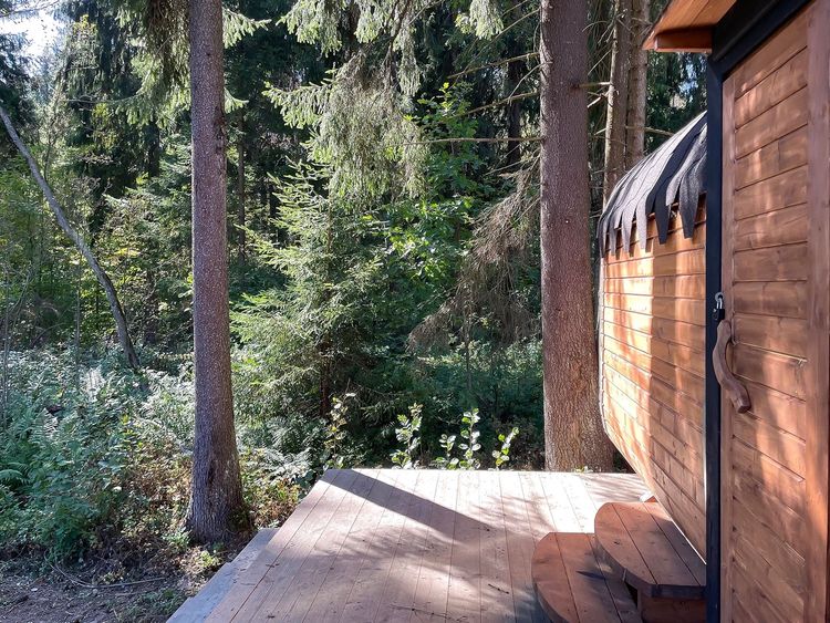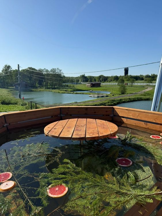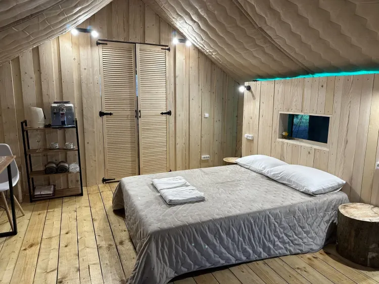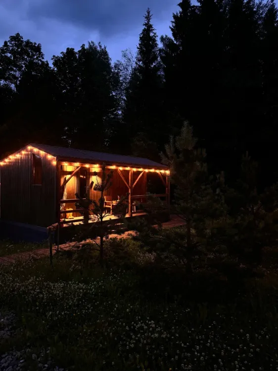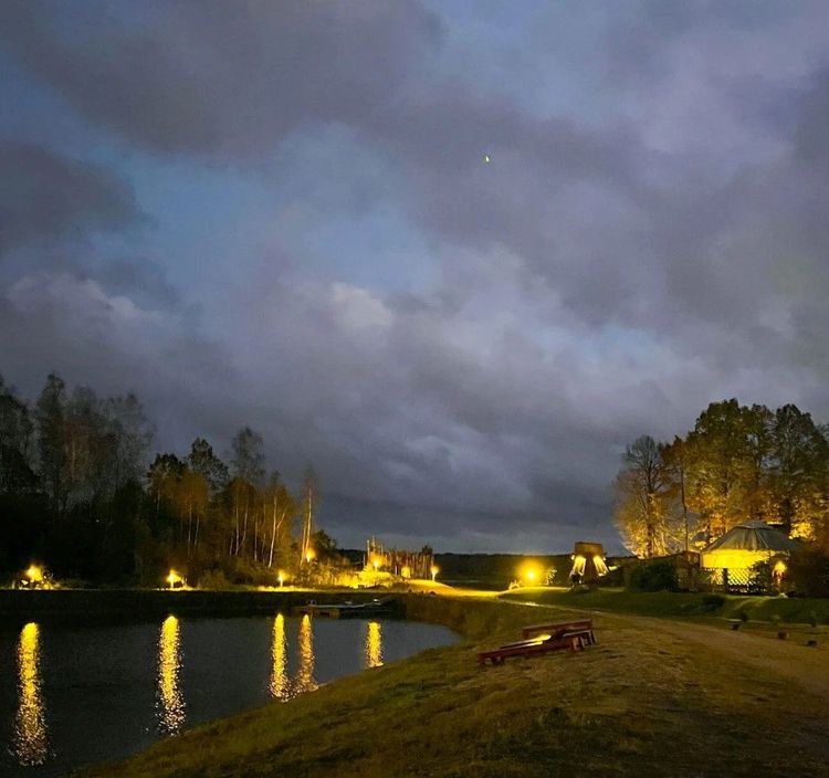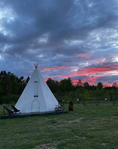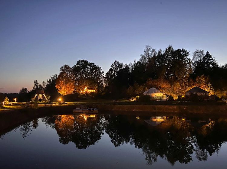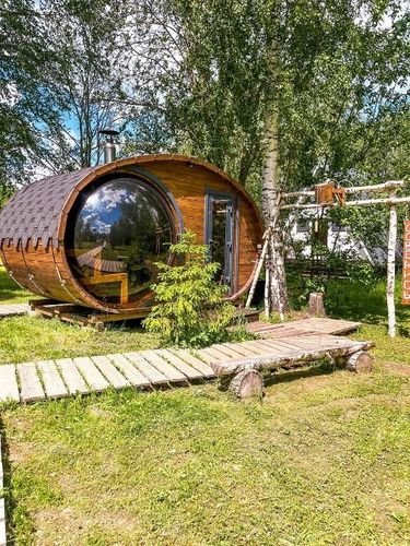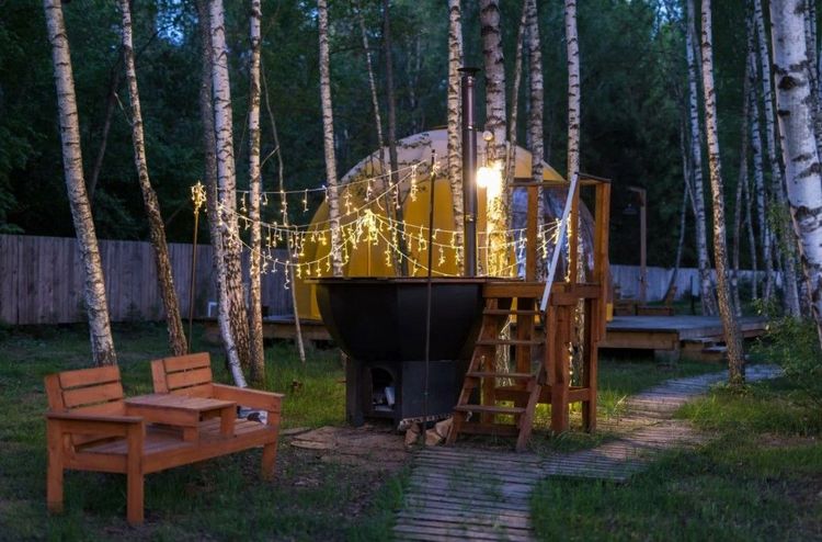 Чем заняться: можно посидеть у костра, послушать щебет лесных птиц. В летнее время есть возможность посидеть с удочкой на берегу озера и если повезет с уловом, тут же приготовить рыбку в мангальной зоне. Горячие купели конечно не новинка для глэмпингов, но не стоит недооценивать приятных впечатлений от душистой ванны под открытым небом. По субботам часто организуются выступления артистов или караоке-вечера , где организаторы угощают гостей глинтвейном и коньяком.