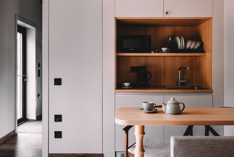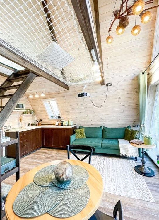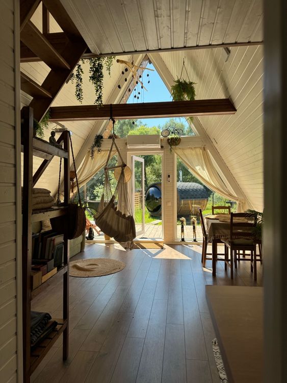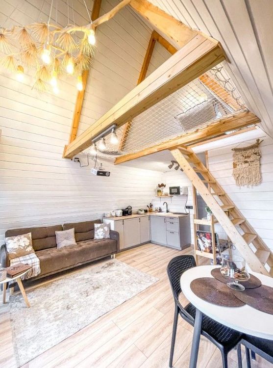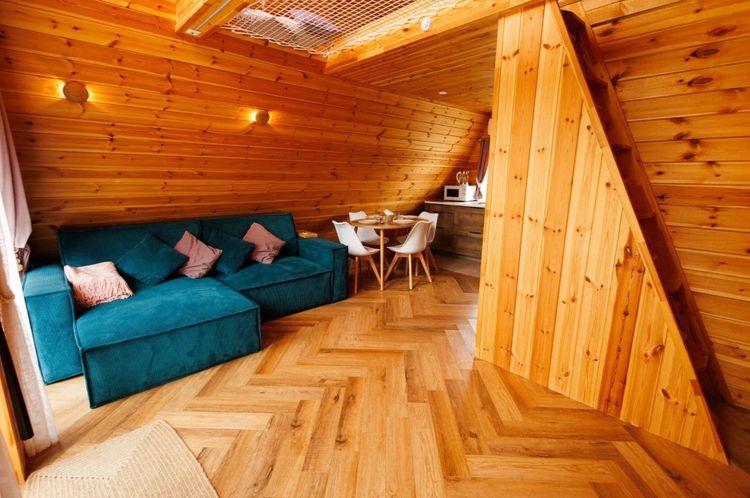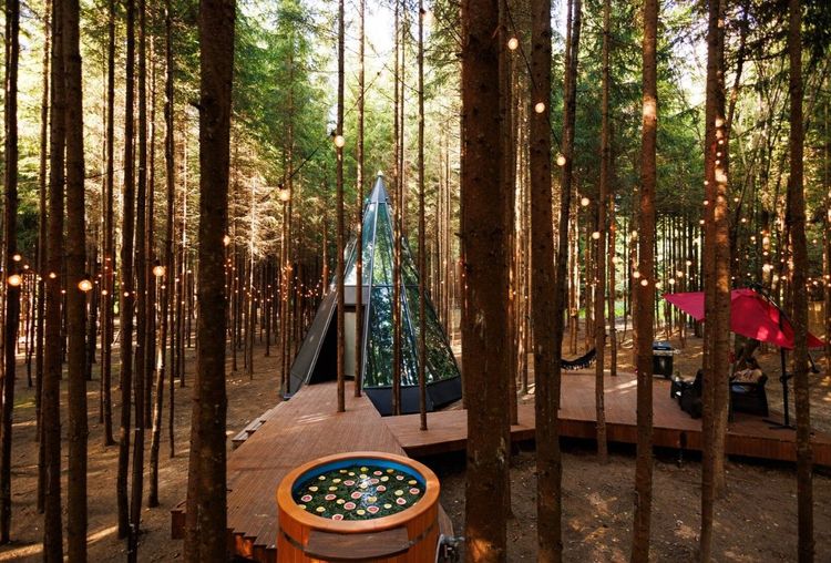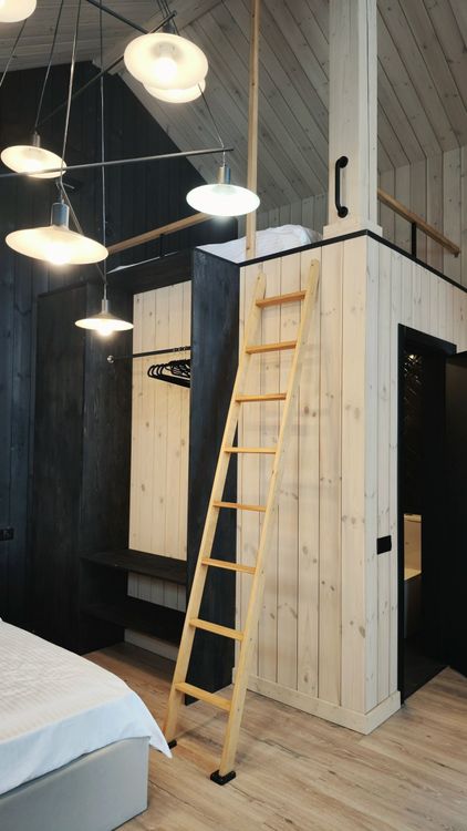 Проживание: сразу надо сказать, что концепция этого пространства - adult only 18+, и отдохнуть здесь с маленькими детишками не получится. Зато тишины, покоя и свежего воздухом тут в избытке. Концепция отдыха без детей не нова, ведь если существуют отели для семейного отдыха, то должны быть и отели для уединенного времяпрепровождения. Поэтому, если вы задумали спокойный и романтичный вечер на двоих, смело отправляйтесь сюда. Здесь вас встретят несколько А-фрейм домов со всем необходимым. Кухня, просторная гостиная, мансарда-спальня. Не забывайте, что на всей территории действует правило тишины.