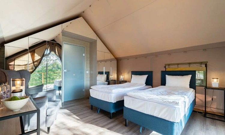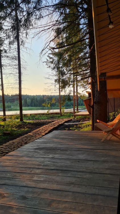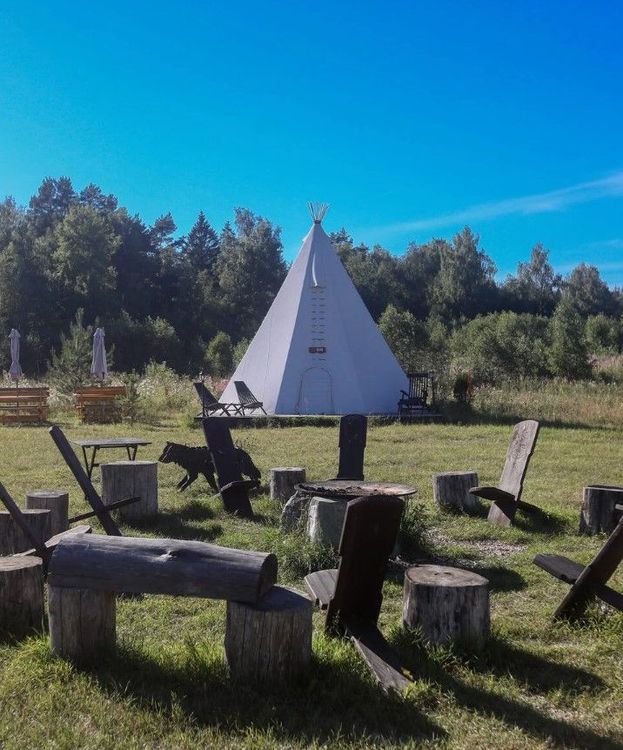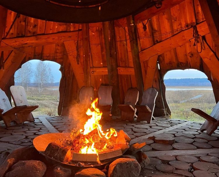 Чем заняться: очень удобная и просторная костровая зона примет до 18 гостей. Для маленьких посетителей предусмотрены детские скамейки. Можно уютно посидеть у костра всей семьей, а организаторы каждый день угощают там жареными зефирками, причем бесплатно и в неограниченных количествах. Поиграть можно в петанк , мини-гольф или поучаствовать в квесте «юный следопыт», где придется поискать следы в лесу, понаблюдать за птицами и попробовать отыскать лосей и бобров. Немало удовольствия для всей семьи принесет и запуск в небо воздушного змея. Ночью, когда на небе появятся звезды, можно стать настоящим астрономом и полюбоваться в телескоп на далекие звезды. Ну а после активного дня будет приятно насладиться SPA процедурами, почитать книгу из местной библиотеки или поиграть в настольные игры.