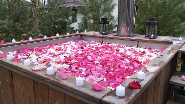 Стоимость: вилла стандартная для двух человек стоит от 5500 руб/сутки. Вилла с купелью для компании до 8 человек обойдется от 16000 руб/сутки. Ну а вилла с террасой для четырех посети будет стоить от 8500 руб/сутки.