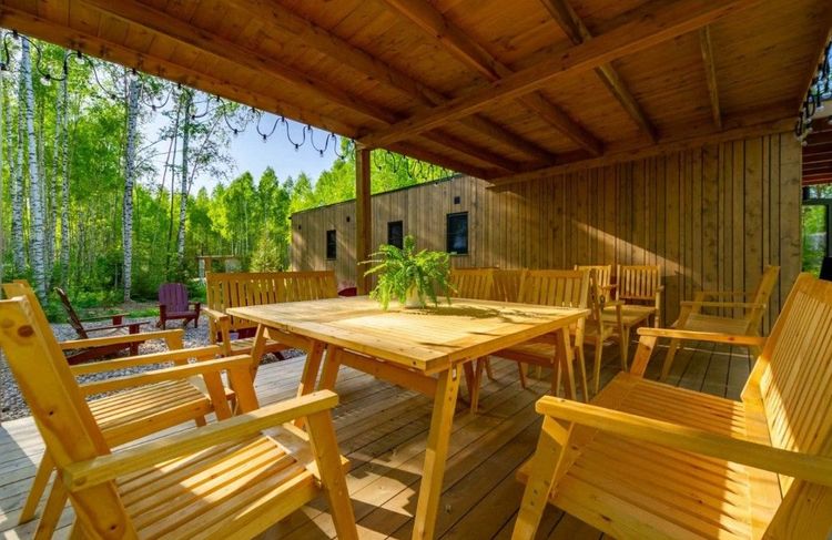 Чем заняться: прогуляться на свежем воздухе, почитать книгу, пожарить шашлыки, провести время с друзьями и приготовить ужин на открытом огне в закрытой всепогодной беседке. Все эти простые и понятные удовольствия вы сможете получить в этом загородном комплексе. А еще погреться в бане, которую специально для вас собрали в Карелии. Так что если вы захотели тишины и покоя без лишней суеты, то смело можете отправляться в загородный комплекс «The Les».