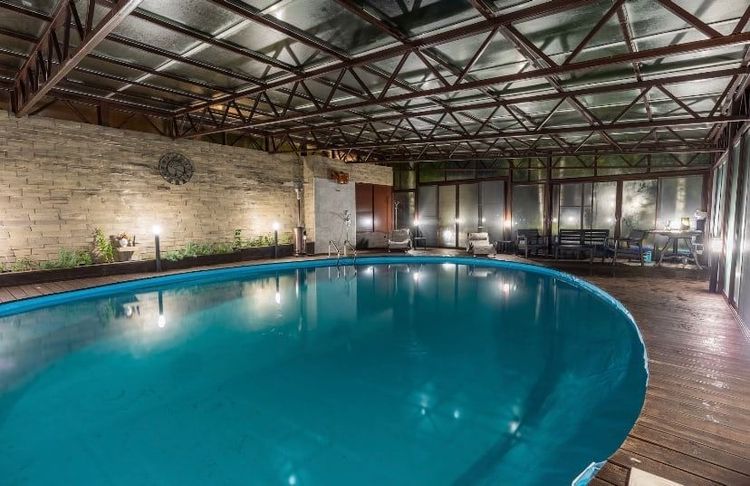 Проживание: домики отличаются друг от друга , как по дизайну, так и по вместимости. Расположены они в еловом лесу на большом удалении друг от друга. Есть очень оригинальные предложения, например Зеркальный Дом на дереве или Стеклянный Дом-пирамида. Названия домов говорят сами за себя: Любовник, Романтик, Художник, Путешественник… Действительно, на территории имения царит романтическая и творческая атмосфера. Хозяйка имения практикующий психотерапевт, и по всей видимости постаралась создать максимальный уют для своих гостей. Кроме домов, бани и купелей на территории есть просторный ресторан, большой Дом для мероприятий, паркинг, свадебная площадка и даже пруд для рыбалки.