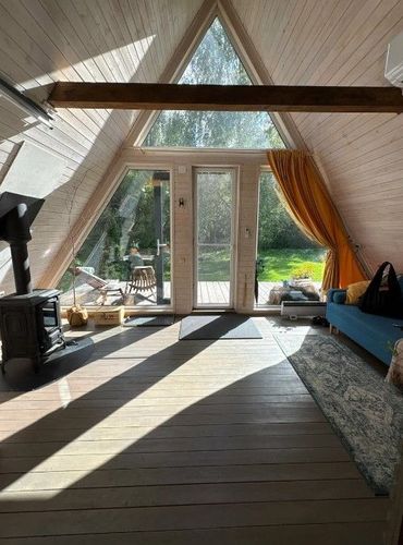 Стоимость: провести время в А-фрейм домике, вместимостью 2-4 человека можно за 6900 р. в сутки. Барн, площадью 100 кв.м. для 4-6 человек обойдется 8900 р. в сутки.